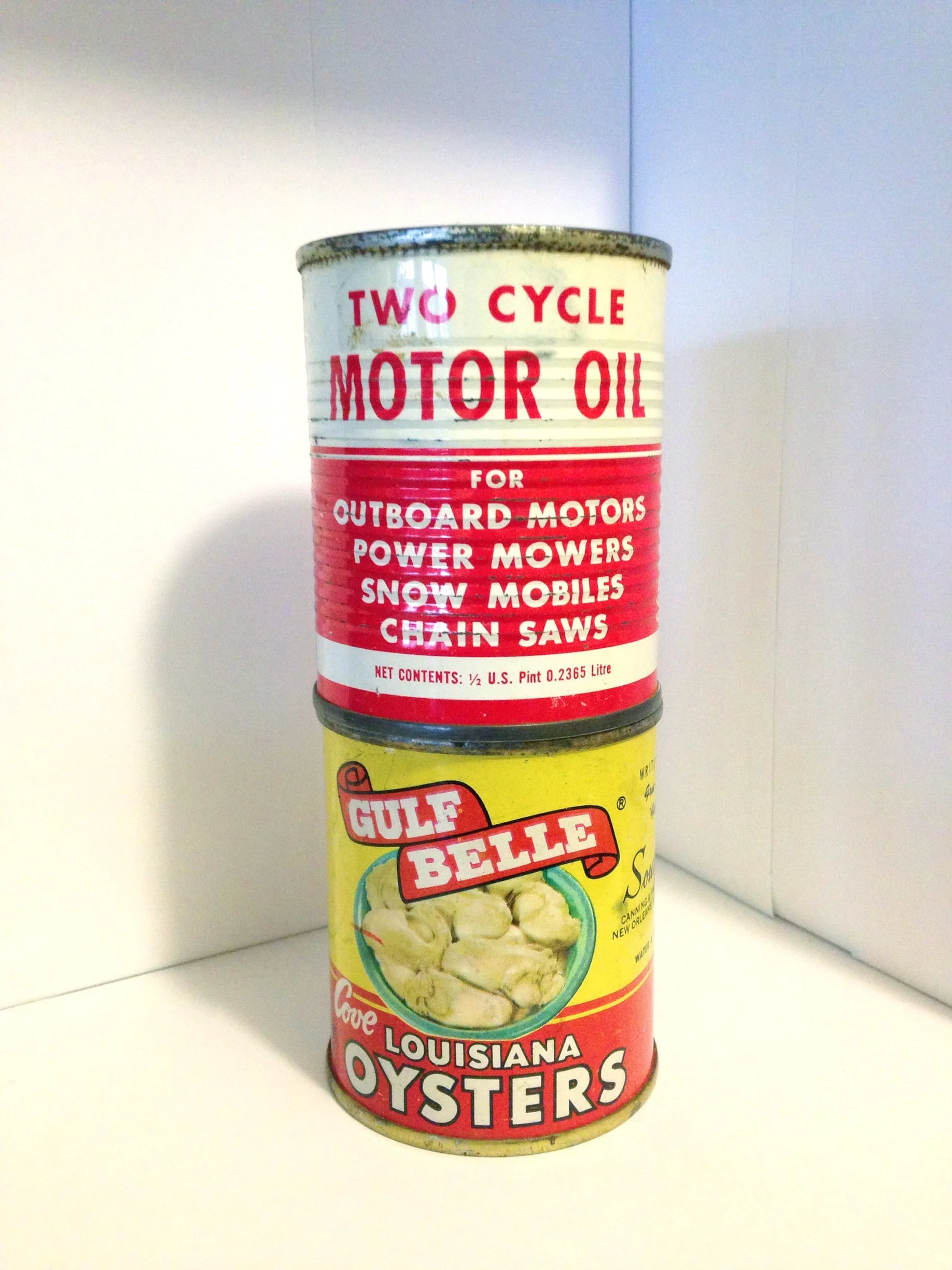 These cans have been a fixture in my office for many, many years. The motor oil inspired an assignment in one of my Beyond the Page classes. The oysters fascinated me because the photography is so damned unappetizing. That type, though...TASTY!!!